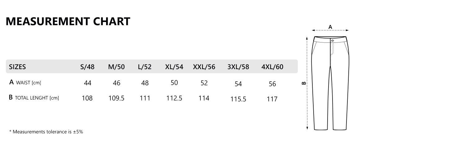Pantalone, 240gr/m2, keper, dva prednja džepa, mali džep, dva džepa pozadi i dva sa strane, dve gajke za čekić, etiketa za lične podatke unutra, trostruki štepovi i ringlice, kao ojačanje.