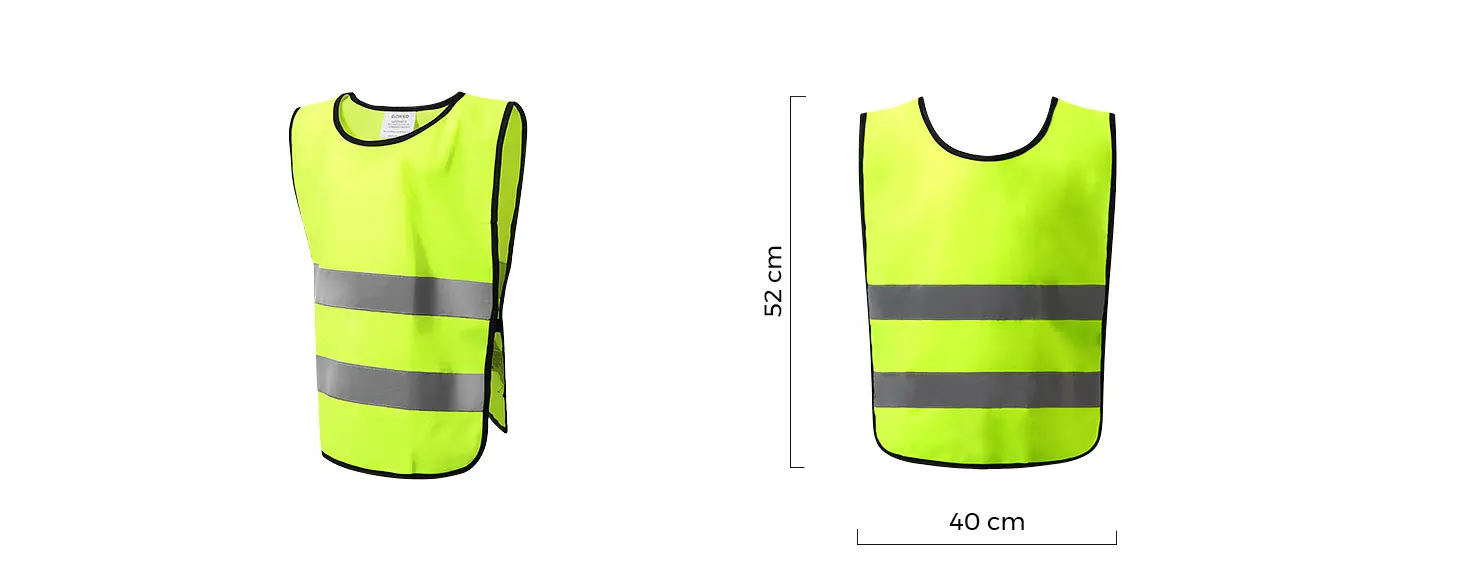 Dečji prsluk, fluorescentni, dve reflektivne trake napred i dve pozadi.