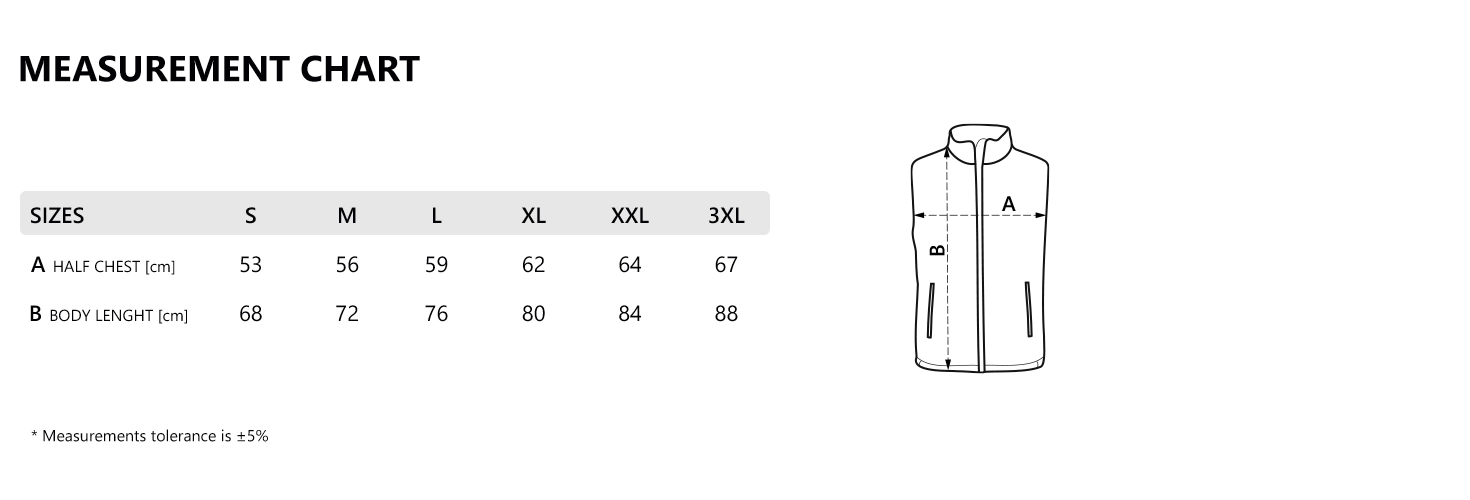 Prsluk, 270 g/m2, platno prepletaj, visoka kragna, ojačanja od 600D poliestera na mestima izloženim većem habanju, šest prednjih džepova, uključujući džep za mobilni telefon i dva džepa sa rajsferšlusom, jedan unutrašnji džep, čičak trake leđima za podešavanje širine u struku, skriveni unutrašnji rajsferšlus na leđima za lakši pristup prilikom štampanja.